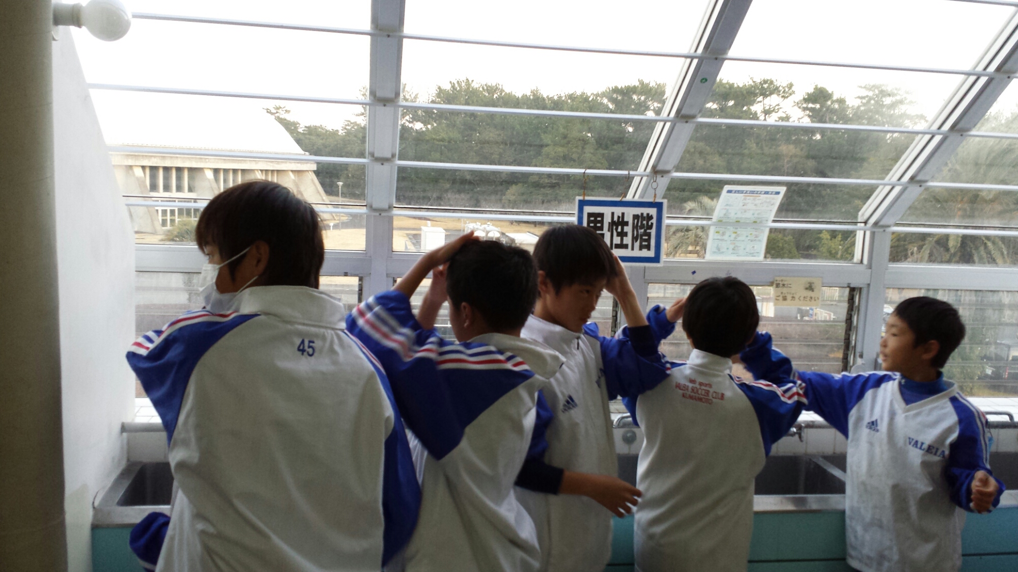 みんな中学生の影響か、鏡で確認している。