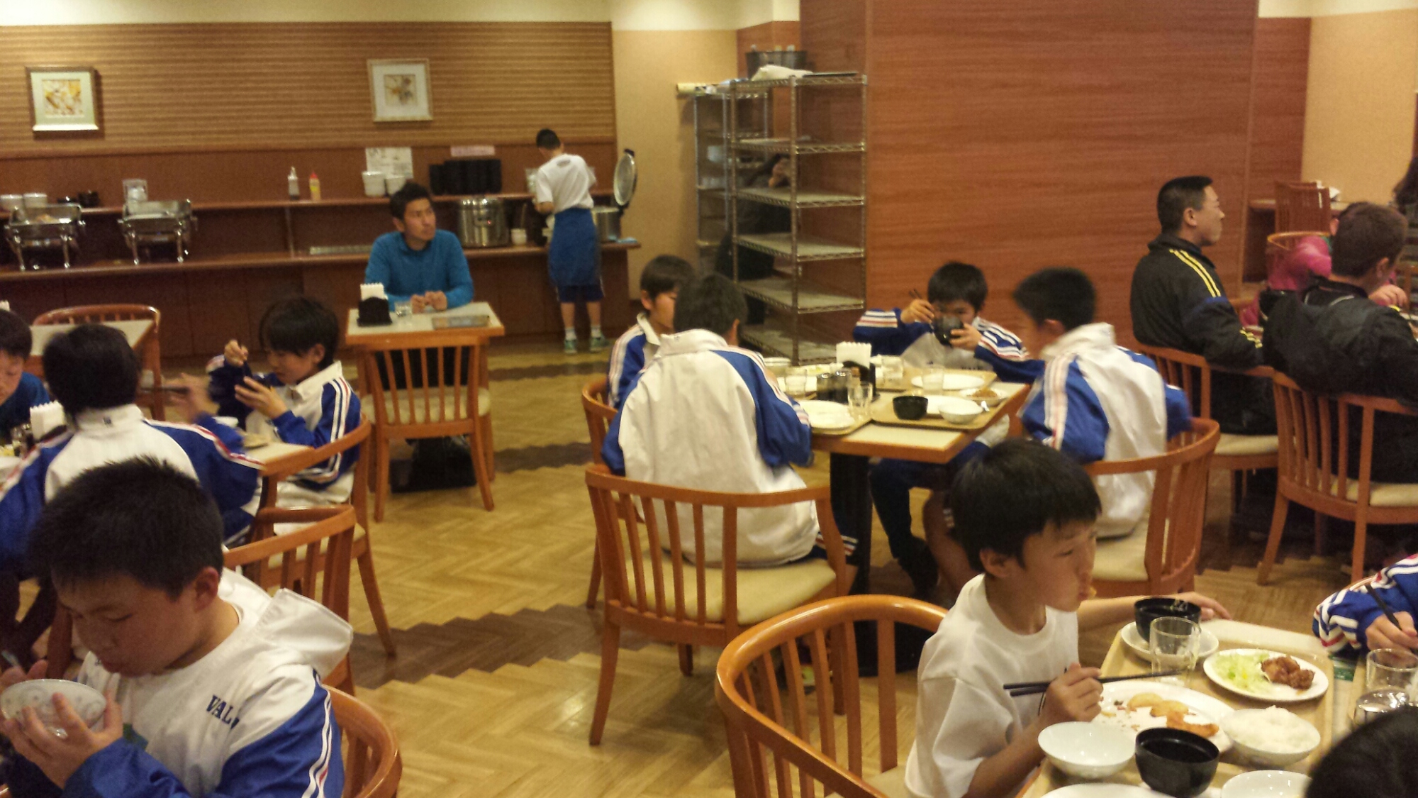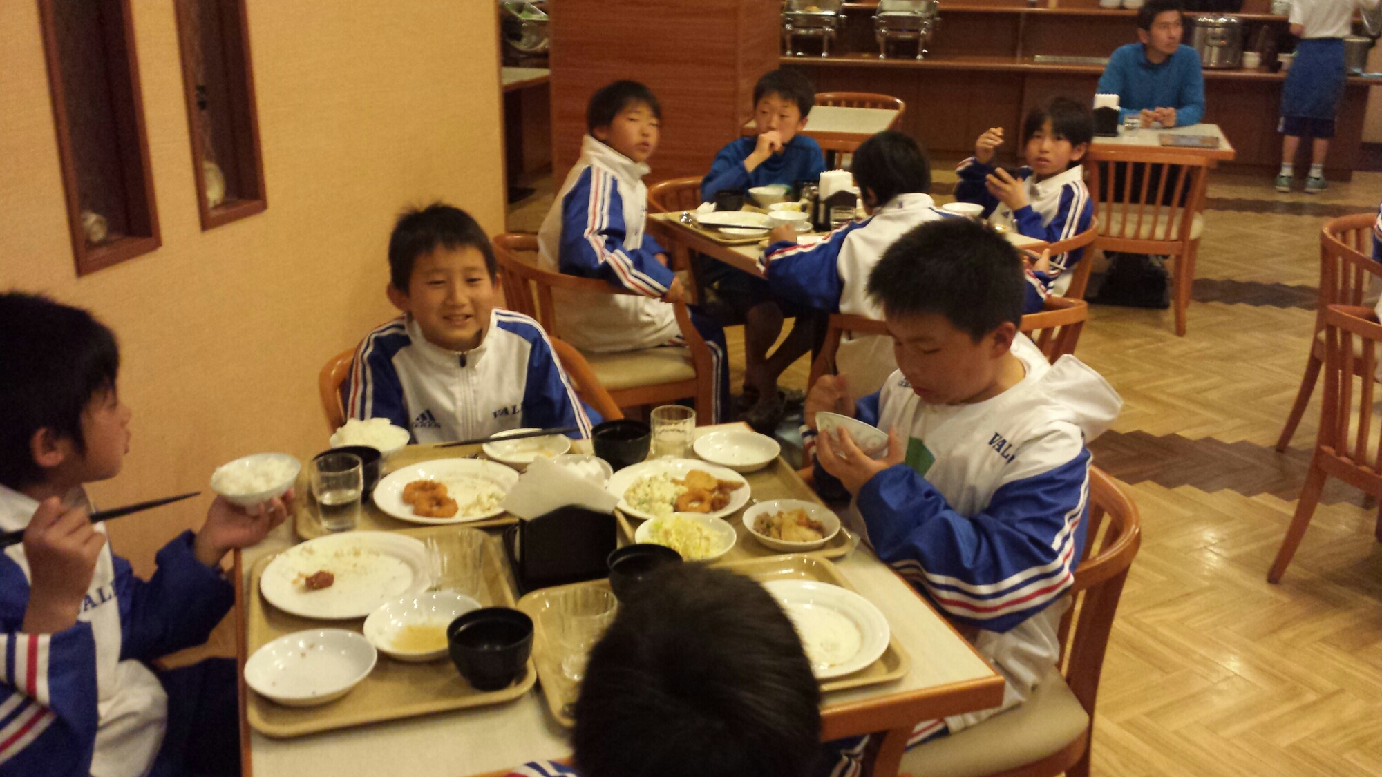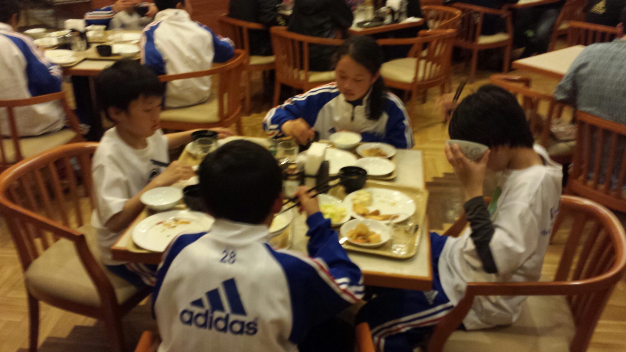新人戦九州大会に出場しているチームで同じホテルで夕食が一緒になった。