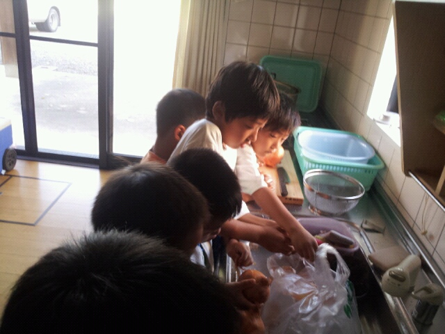 宿舎に着き夕食の準備。