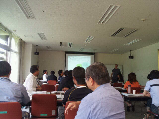 講座は、考えた内容を紙に書きみんなの前で発表する。